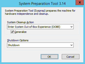 Select OOBE, Generalize, and Shutdown.